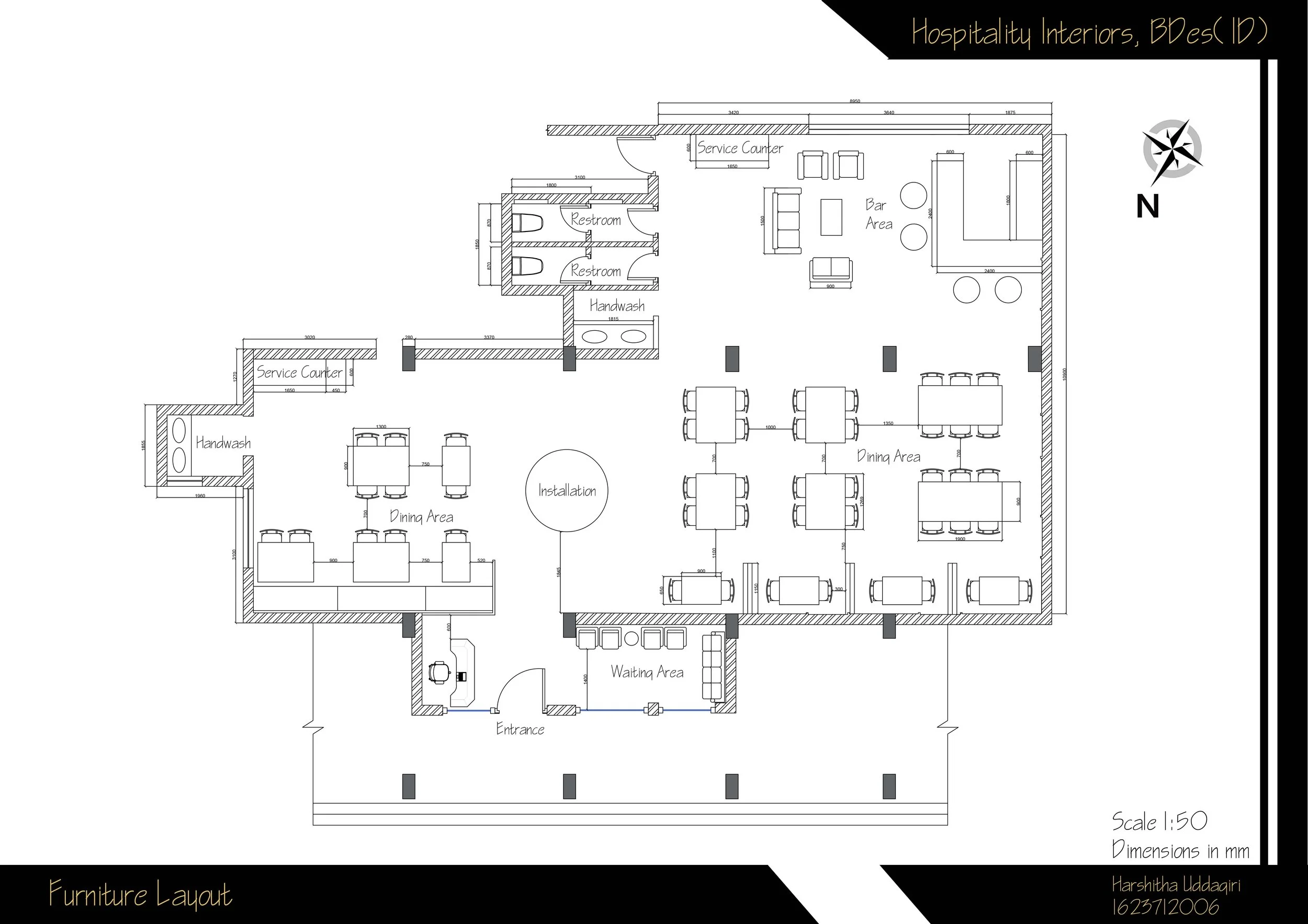 Redesigning the existing hotel and a cafe space into a Fine Dine Restaurant as a part of Hospitality Interiors.