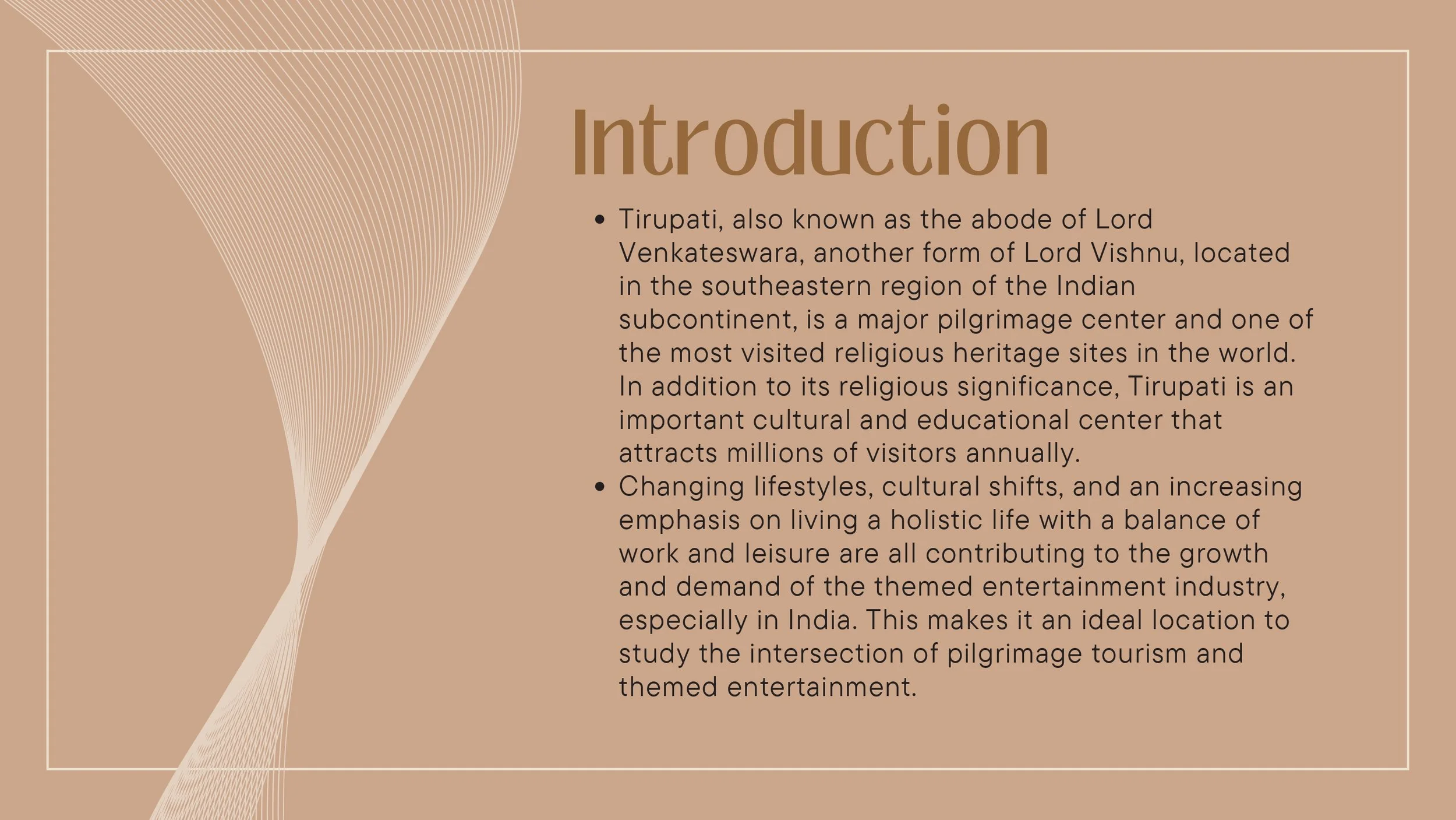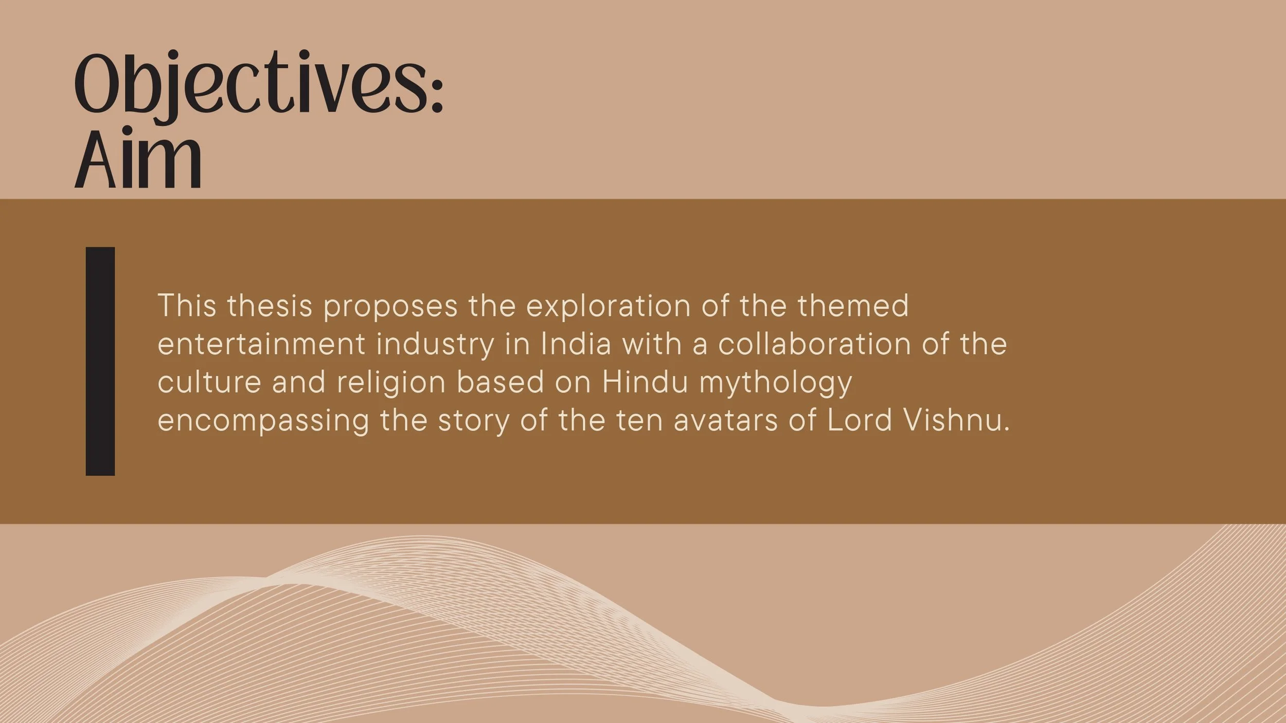 This project is a thesis design proposal for a themed walk-through visitor attraction based on one of the most significant deities in the Hindu pantheon, Lord Vishnu, and his ten avatars. The aim of the thesis is to create an engaging and immersive experience that focuses on bringing the forgotten culture of the Hindu mythology of Lord Vishnu together with the themed entertainment setting. The thesis outlines the conceptual framework for the project allowing the guests to explore different shrines educating and entertaining with the stories of each avatar. While this project focuses on a specific site, the core design themes can be translated to future expansions through pop-up exhibitions and technology based on augmented reality.